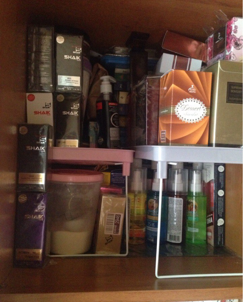 So you can, firstly, store things vertically, and secondly, by category, which will greatly simplify your search for the things you need. Plus, the use of trays and baskets can help you clean up dust easier and reduce visual noise from open storage systems..