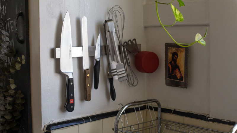 Magnets are very convenient for storing not only knives, but also attachments from a blender, combine, scissors and other things made of steel. They are also useful for storing screwdrivers, nails and other metal items..