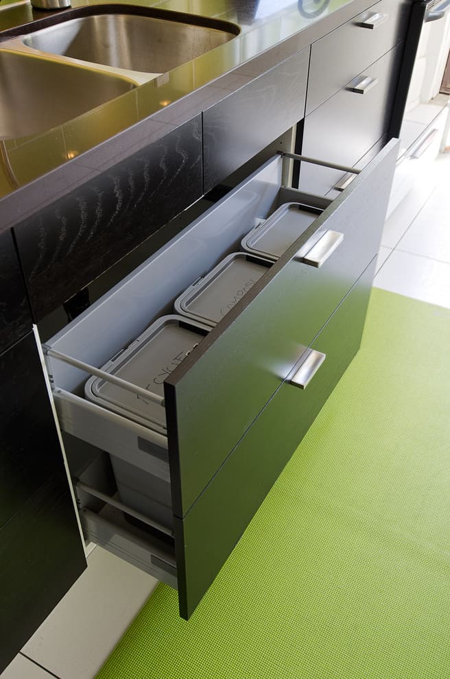 Een speciale aparte lade is de beste manier om uw afval te organiseren. Door één grote bak te maken met aparte kleine containers voor gescheiden afval vereenvoudig je niet alleen het schoonmaken, maar ben je ook nog eens goed voor het milieu..