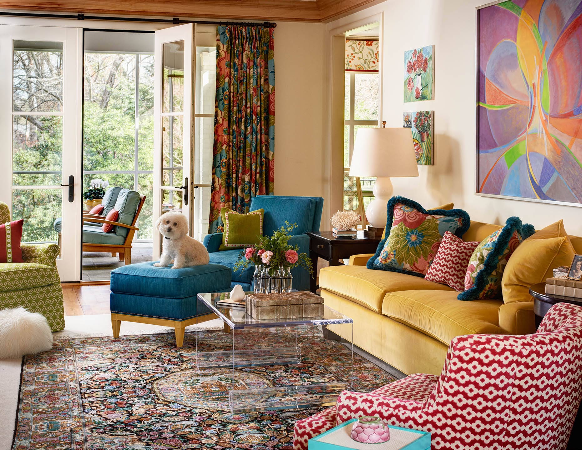 Het volgen van deze strategie is niet 100% noodzakelijk, maar het zal helpen om een organisch interieur te creëren zonder al te veel risico te nemen. De helderste meubels of textiel zien er geweldig uit omdat ze geen dominante kleur hebben die opvalt (en mogelijk conflicteert met een andere kleur op dat meubilair), en het artistieke patroon vestigt de aandacht op het ontwerp zelf, in plaats van op de individuele kleuren..