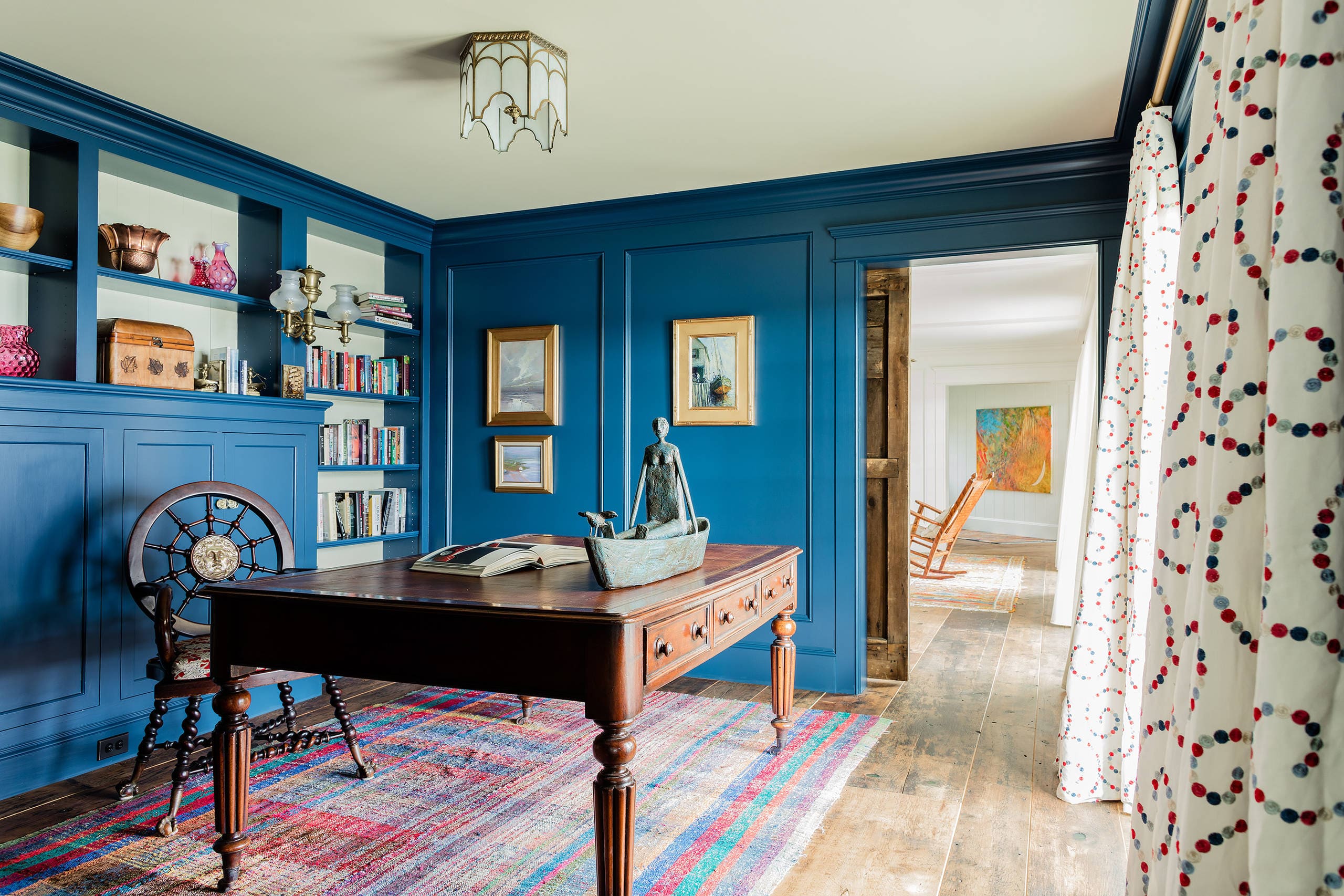 Het toch al rijkere blauw is nog steeds een kneedbare kleur waar gemakkelijk mee te werken is. Het ziet er geweldig uit in een effen kleurontwerp zoals dat op de onderstaande foto, waardoor het een levendig gevoel krijgt, ook al gebruikt het voor het grootste deel slechts één kleur..