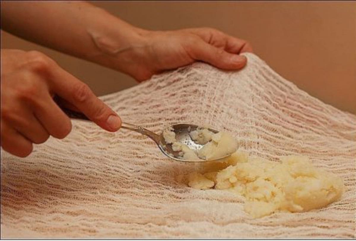 Een koud kompres gemaakt van aardappelen helpt bij het wegwerken van gebarsten hielen. Voor het grootste effect worden de gewenste plaatsen in een kompres gewikkeld en een nacht gelaten. De pijn wordt verlicht, kloven genezen en de huid wordt zachter. Twee aardappelen moeten in uniformen worden gekookt en samen met de schil worden gesneden, vervolgens de massa in gaas wikkelen en op de zere plek bevestigen. Spoel ‘s morgens je voeten af met warm water. U moet de procedure herhalen totdat de situatie verbetert..