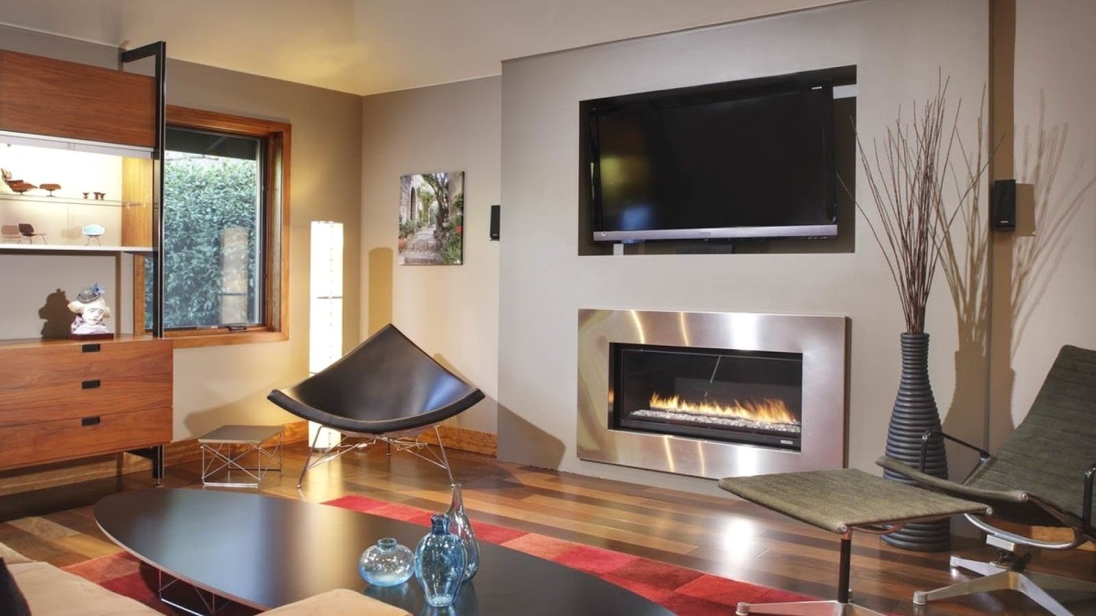 Als de huiseigenaren het geluk hebben een open haard in de woonkamer te hebben, dan is dit de perfecte plek voor een tv. Ze zullen perfect bij elkaar passen en een blikvanger worden. In dit geval moet rekening worden gehouden met de grootte van de open haard en tv: ze moeten in de breedte passen. Anders wordt het interieur omslachtig. Wat de hoogte betreft, het hangt allemaal af van welke decoratieve elementen – ingelijste foto’s of vazen - de ontwerper op de open haard wil plaatsen.