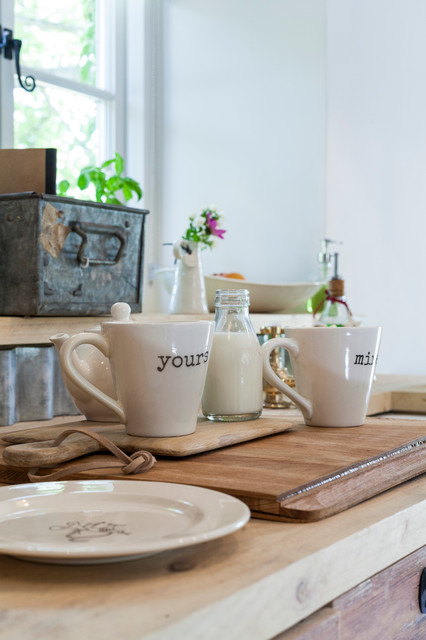 Oplossing. Plaats een schattig bakje in de buurt van waar je meestal warme dranken bereidt. Plaats daar gebruikte tassen. Ze blijven onzichtbaar en tegelijk klaar voor hergebruik..
