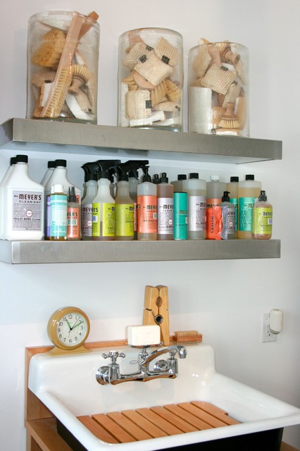 Oplossing. Koop een mooie emmer of mooie bak voor al je schoonmaakmiddelen en bewaar ze waar je ze het hardst nodig hebt. U kunt bijvoorbeeld een emmer met snelle toegang in uw badkamer hebben en een andere op de gebruikelijke plaats onder de gootsteen..