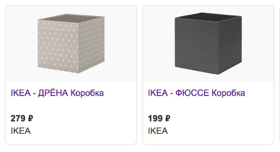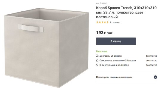 - De grootte Ikea dozen – 46x31x25 cm, prijs – 699 roebel.