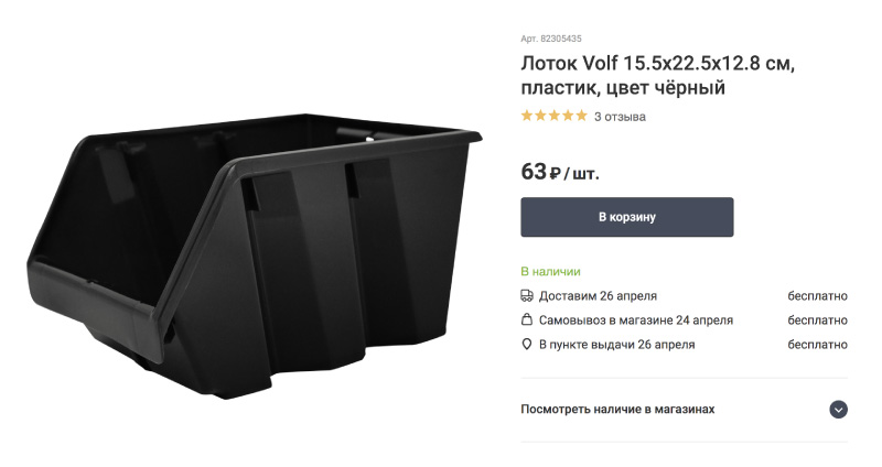 - De grootte Leroy dozen – 45x30x24,1 cm, prijs – 542 roebel.