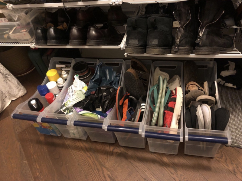 Het sorteren van dingen in categorieën is onmogelijk voor te stellen zonder dozen, containers, manden en trays. Marie Kondo raadt het gebruik van gewone schoenendozen aan. Als je ze echter niet hebt, of een meer esthetische oplossing wilt, gebruik dan containers. De goedkoopste opties (vanaf 17 roebel) van alle maten zijn te vinden in Fix Price. De containers van Fix Price zijn trouwens niet alleen goed voor hun prijs, maar ook omdat ze perforaties hebben. We raden u aan om dienbladen van dezelfde kleur te kiezen om de visuele ruis in het interieur niet te vergroten..