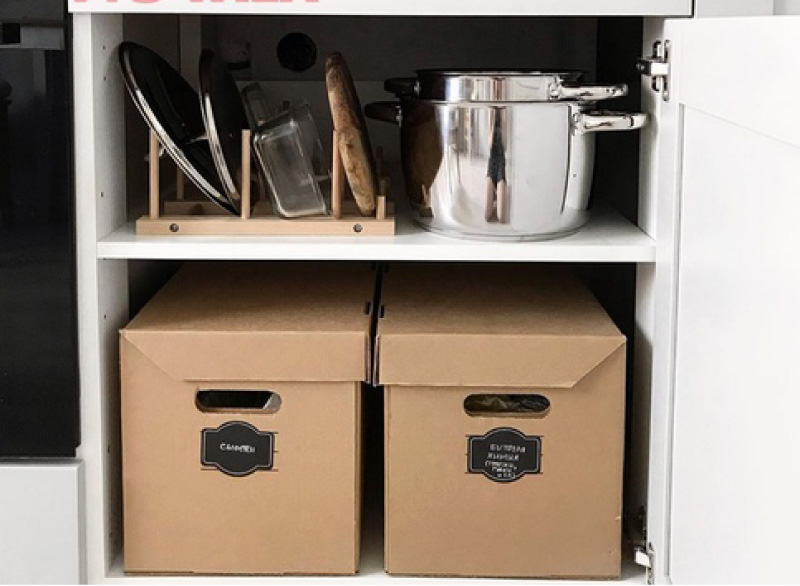 De lijst zou niet compleet zijn zonder de kartonnen dozen waar Marie zo dol op is. In Ikea vind je gewone dozen met een afbeelding, en groot en klein vanaf 49 roebel.
