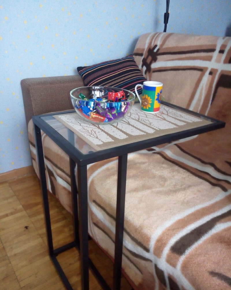 Това е много компактна, мобилна и висококачествена маса за лаптоп. Съдейки по рецензиите, това е наистина удобно за работа на компютър. В допълнение, може да се използва като масичка за кафе или странична маса и дори като нощно шкафче..