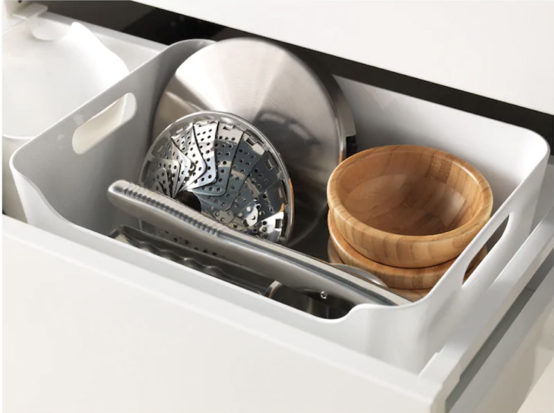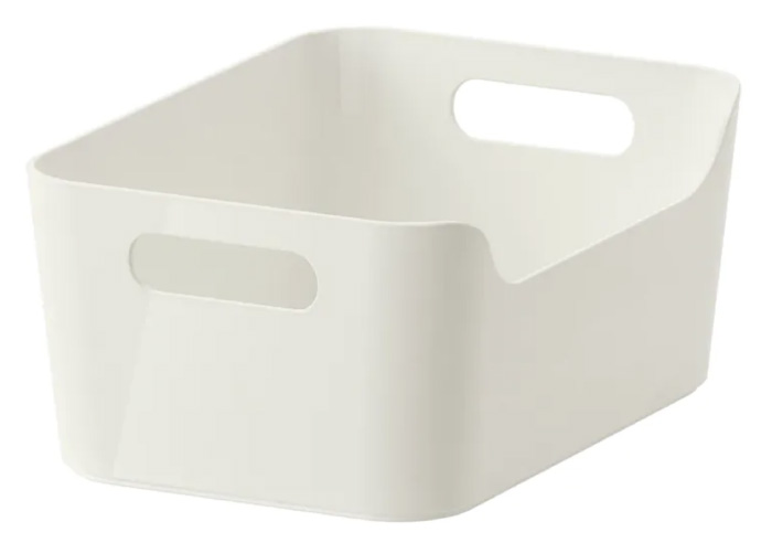 Друг кош, но от стомана – RISATORP. Продава се в 4 цвята (бял, бежов, син и червен). Този чар има много предимства: компактна квадратна форма, дръжка, перфорация (мрежата пропуска въздух, храната остава свежа по -дълго), здравина и лекота. В него е добре да съхранявате плодове и зеленчуци, които не е необходимо да се съхраняват в хладилника, а винаги можете да го вземете със себе си на пикник или лов за гъби и горски плодове. Risatorp обаче е толкова сладък, че е подходящ за съхранение на всичко – не само на храна..