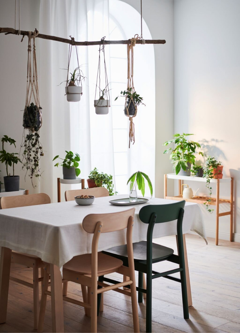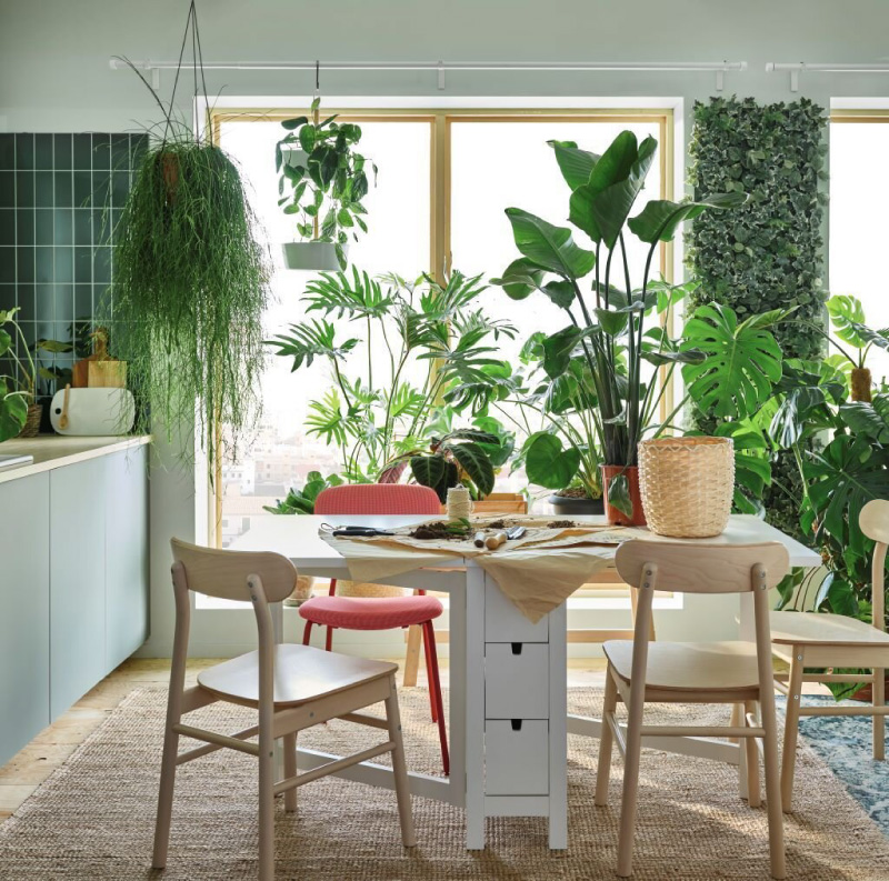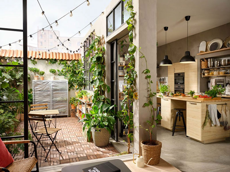 Според шведските дизайнери, в кухнята трябва да има много растения. И не само на перваза на прозореца, но и на масата, под тавана, на работния плот, по стените и на пода.