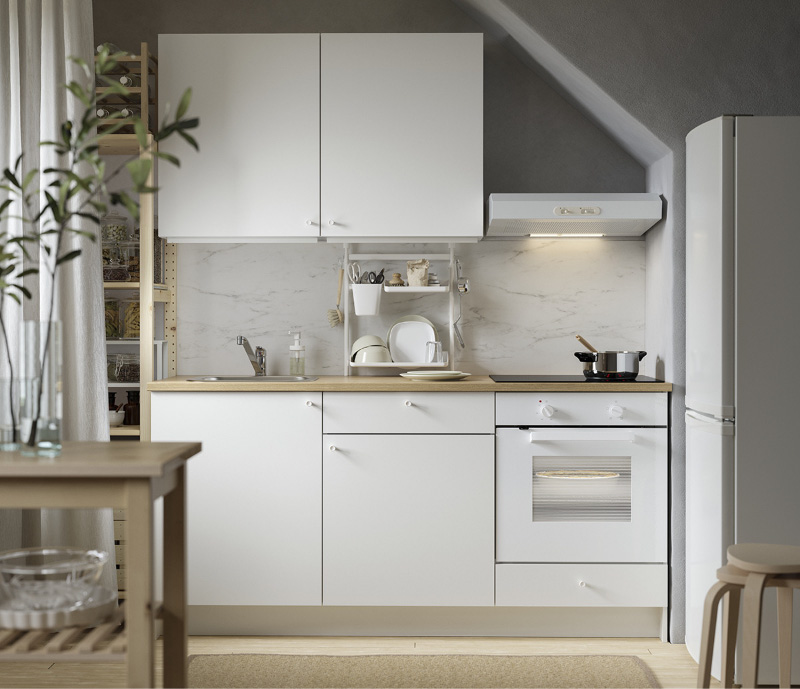 Белите кухни заемат голяма част от каталозите на магазина всяка година. Но все пак нещо се е променило: през 2021 г. IKEA ги вижда по -скоро „топли“, отколкото „студени“, както беше преди (поради дървени повърхности, както и жълти, оранжеви и бежови акценти). В допълнение, белите кухни сега трябва да бъдат още по -минималистични и да имат ясни линии, като кухните от серията Weddinge и Knoxhult (на снимката).
