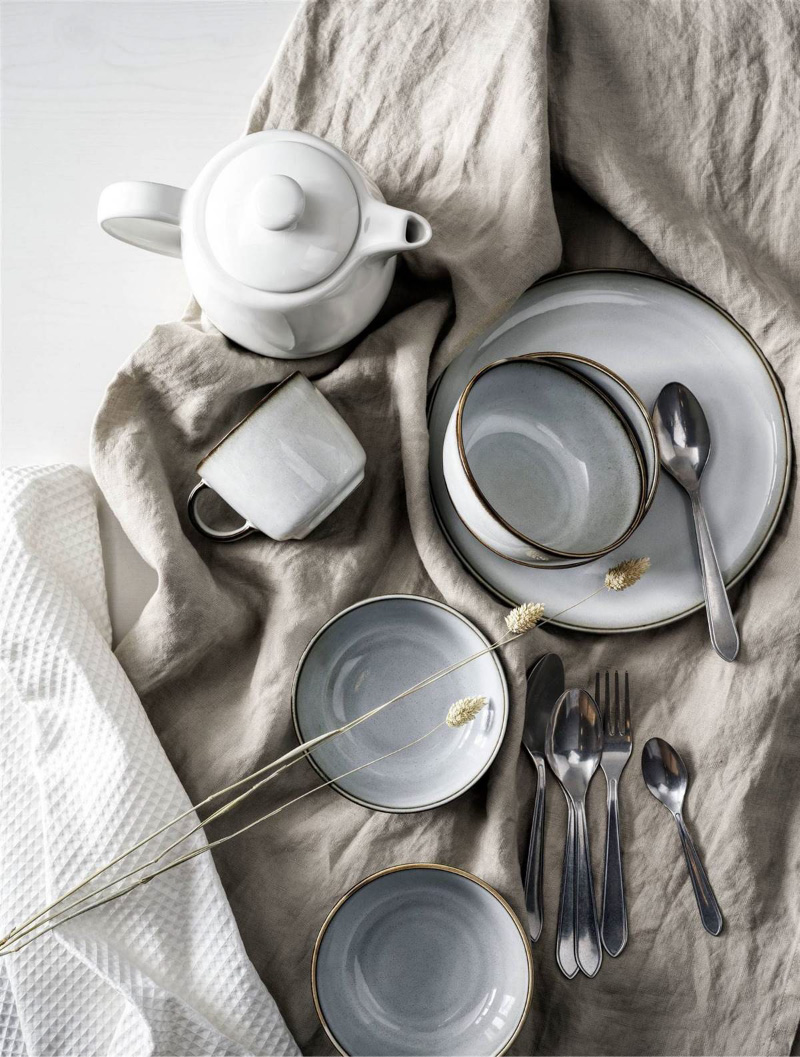 Без съмнение IKEA ще пусне много нови ястия, покривки, купи, прибори за хранене, тенджери и кухненски прибори, но в момента можем да видим само няколко нови продукта. Много ни хареса серията GLADELIG от синкаво-сива керамика с тъмна рамка.