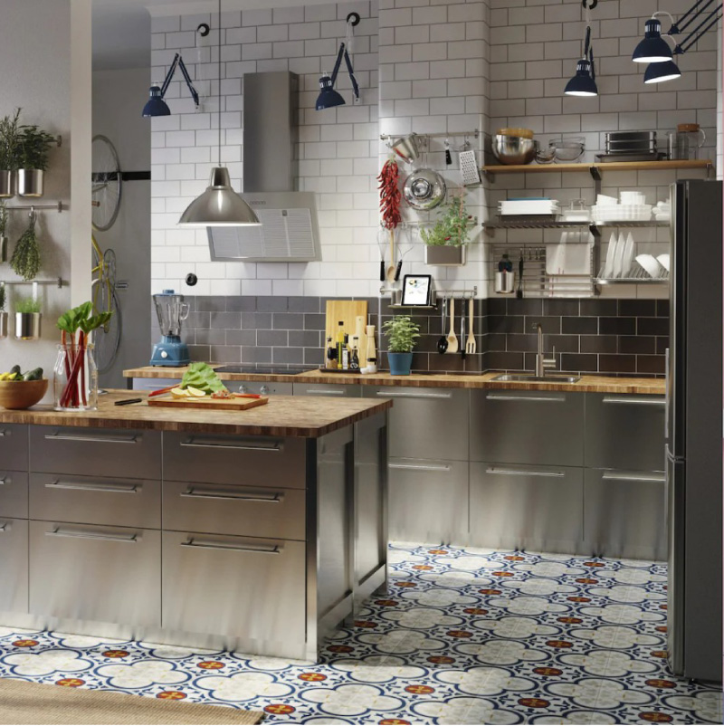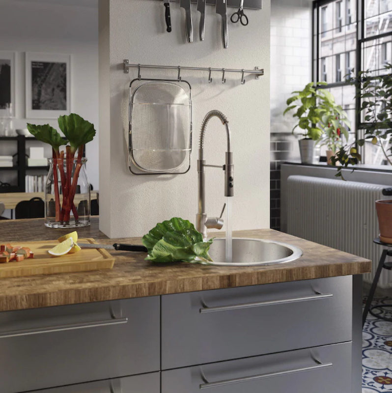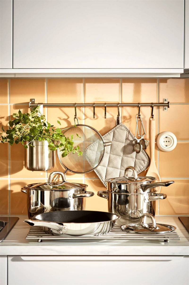 Ако стоманената кухня ви се струва твърде смела, тогава стоманените съдове и поредицата рафтове и аксесоари KUNGSFORS ще ви помогнат да придадете на интериора ресторант шик..