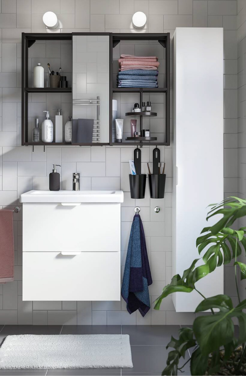 По принцип серията Enkhet е предназначена за кухни, но също така е идеална за баня, тъй като металните рамки не се страхуват от влага.