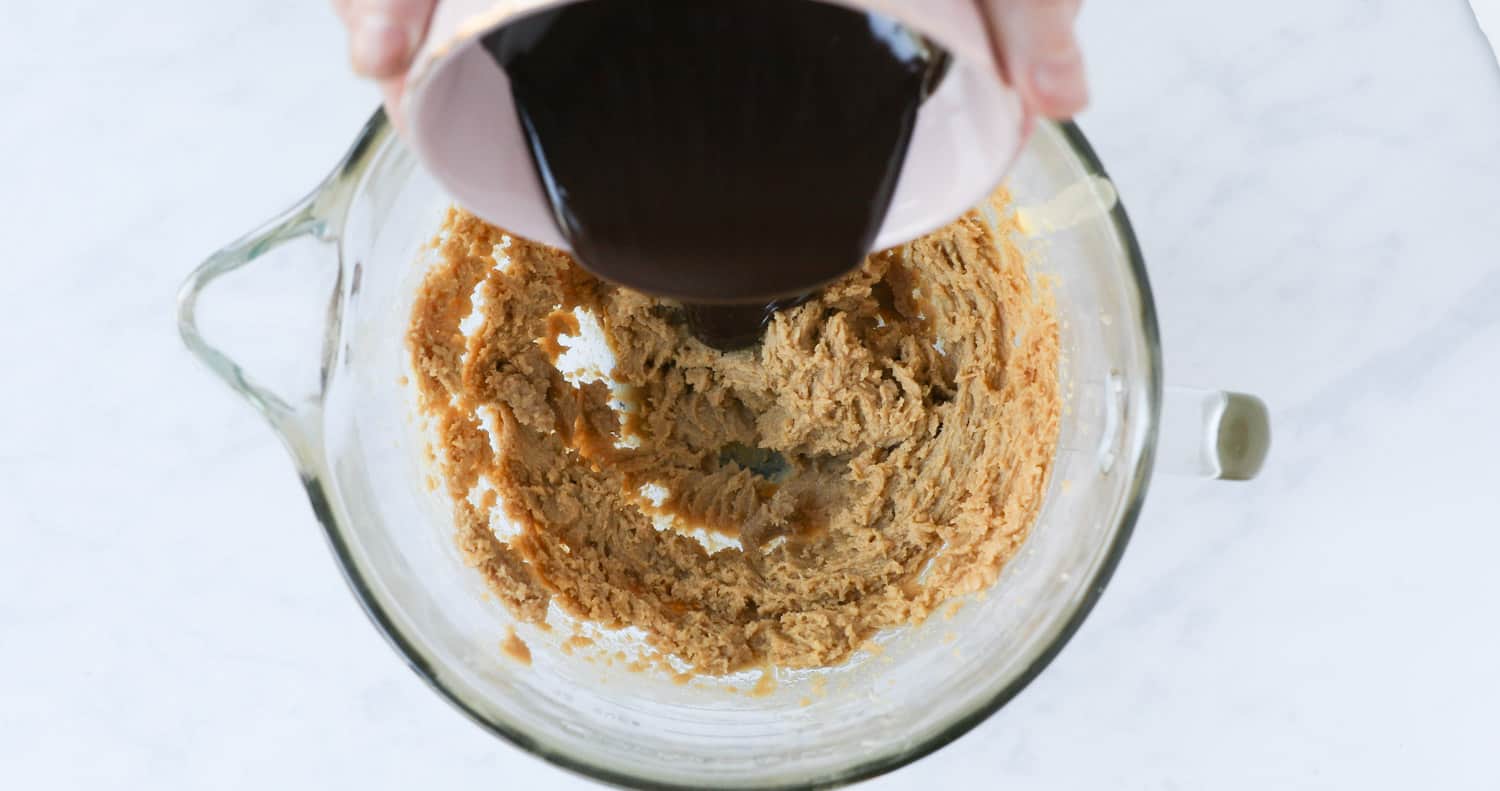 - Hozzáadjuk a kihűlt csokoládét és jól elkeverjük.