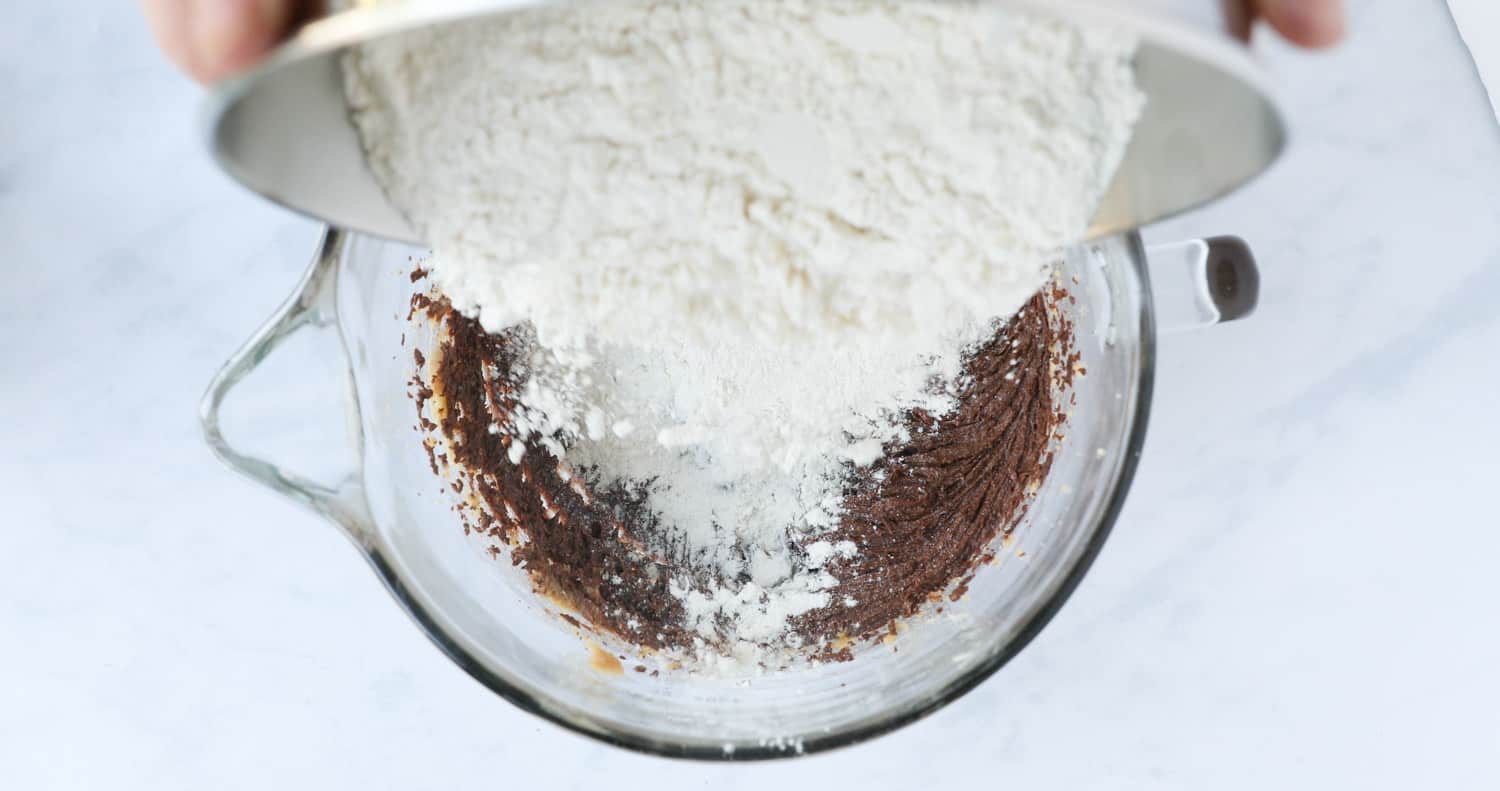 - 7. Külön tálban keverje össze a lisztet, a sütőport, a szódabikarbónát és a sót.