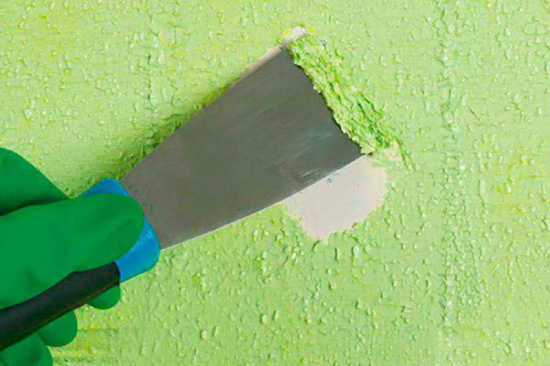 Алкалът ефективно прониква в състава на тапета, поради което ще се справи както с виниловото, така и с многослойното залепване. Важно: предпазвайте откритите части на тялото от алкални агенти, работете в специални ръкавици.