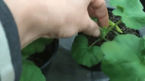 Hieronder in de gif-afbeelding kun je zien hoe je geraniums met de hand knijpt (je kunt dit doen met een schaar).
